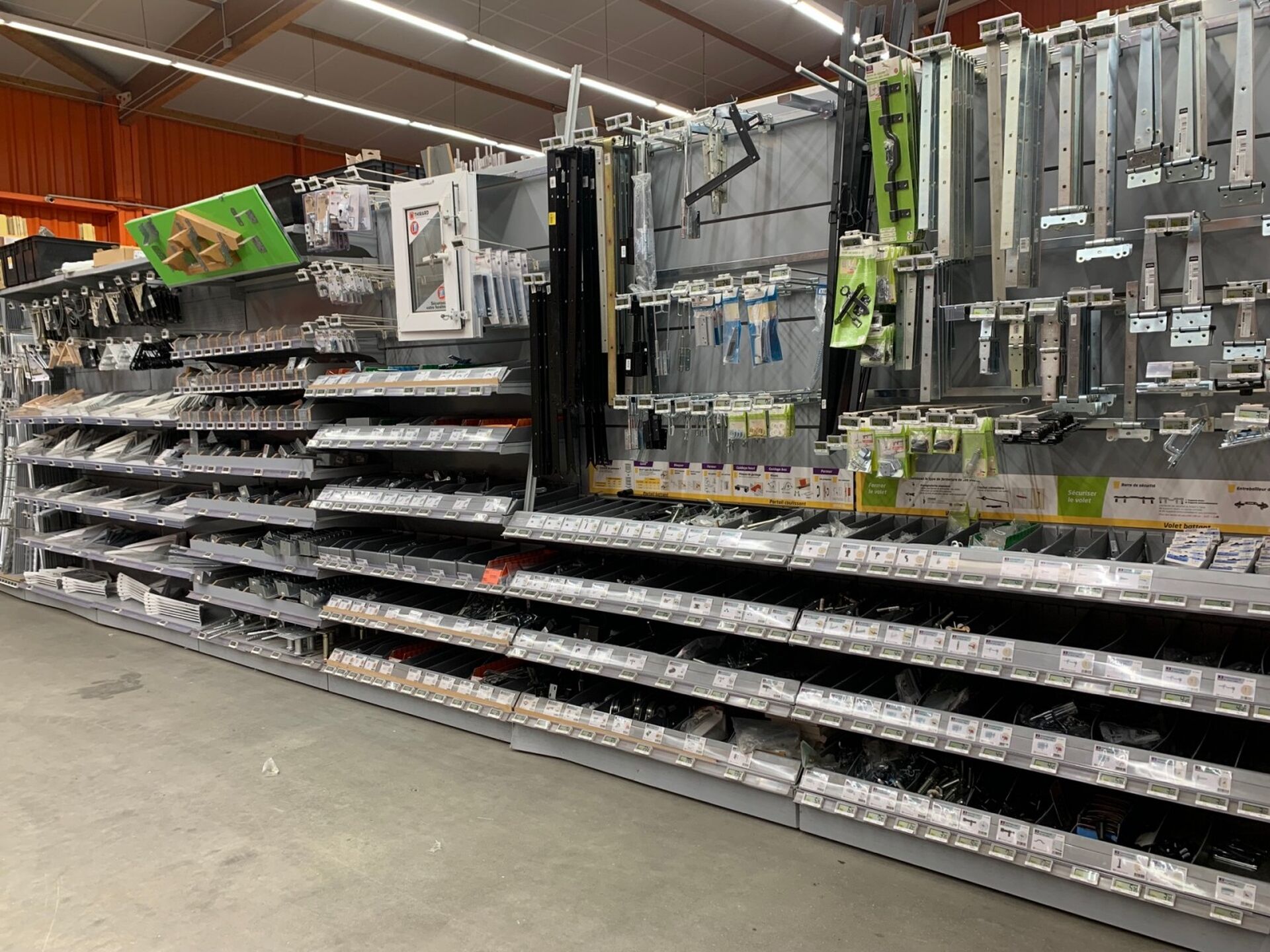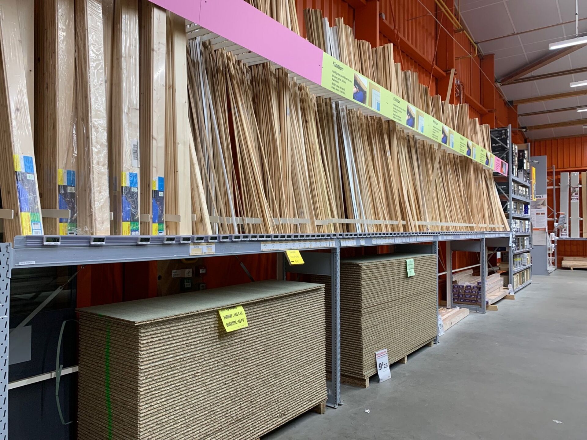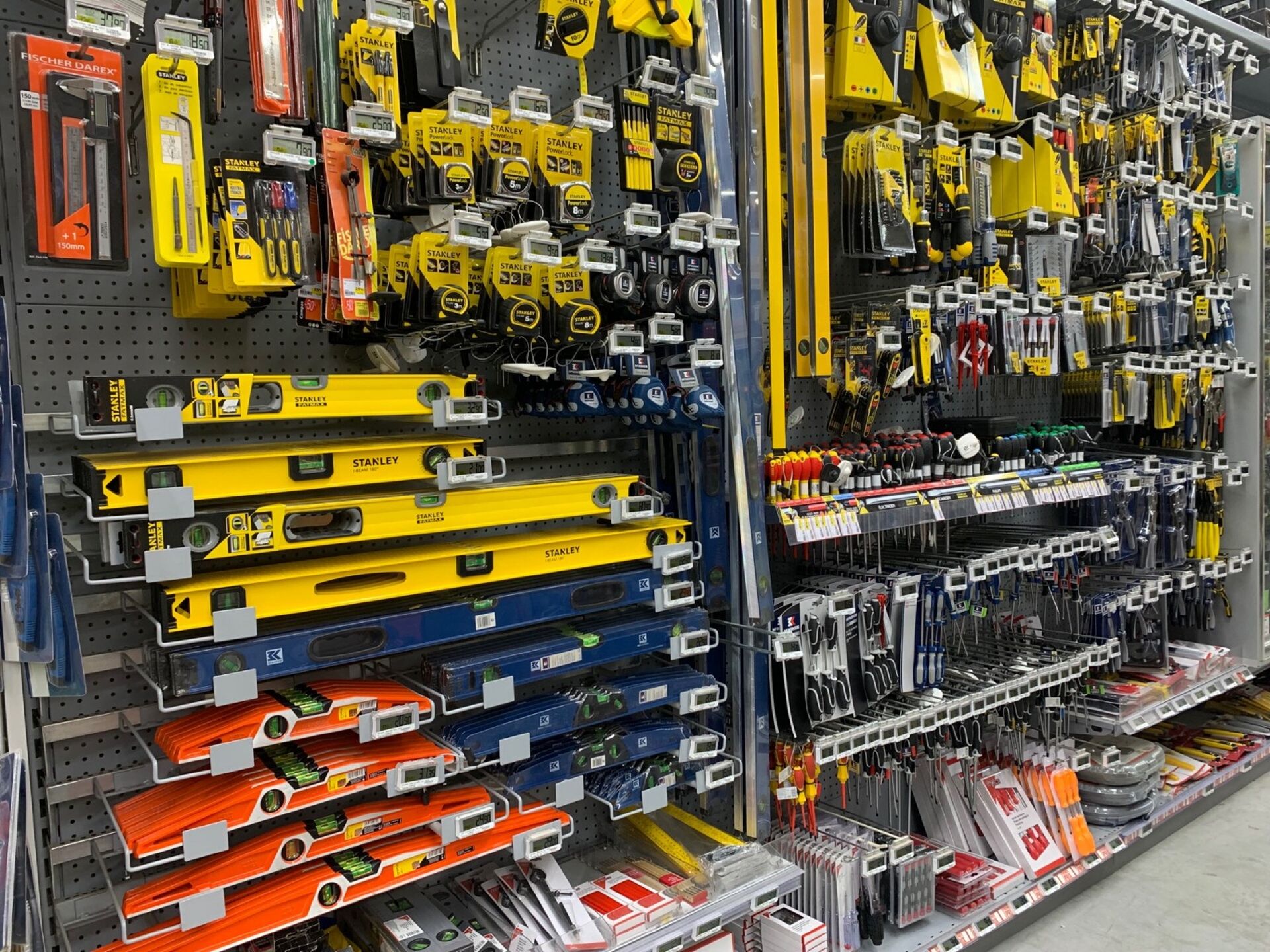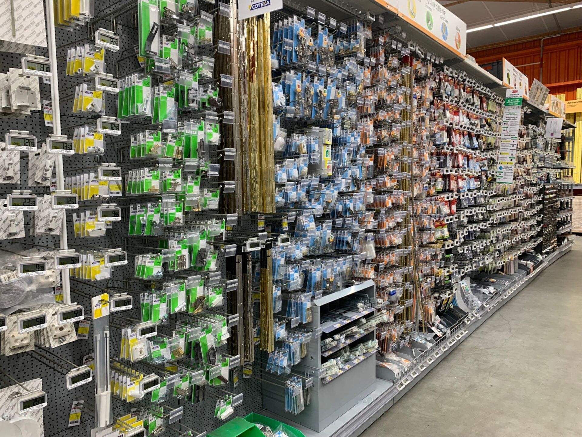 Vis, chevilles, clous, tasseaux, moulures, tablettes, tournevis, mètres, niveaux, marteaux, pinces coupantes, crayons, cutters, scies, outils électroportatifs, équipements de protection individuelle, ... Vous pourrez acheter tout le