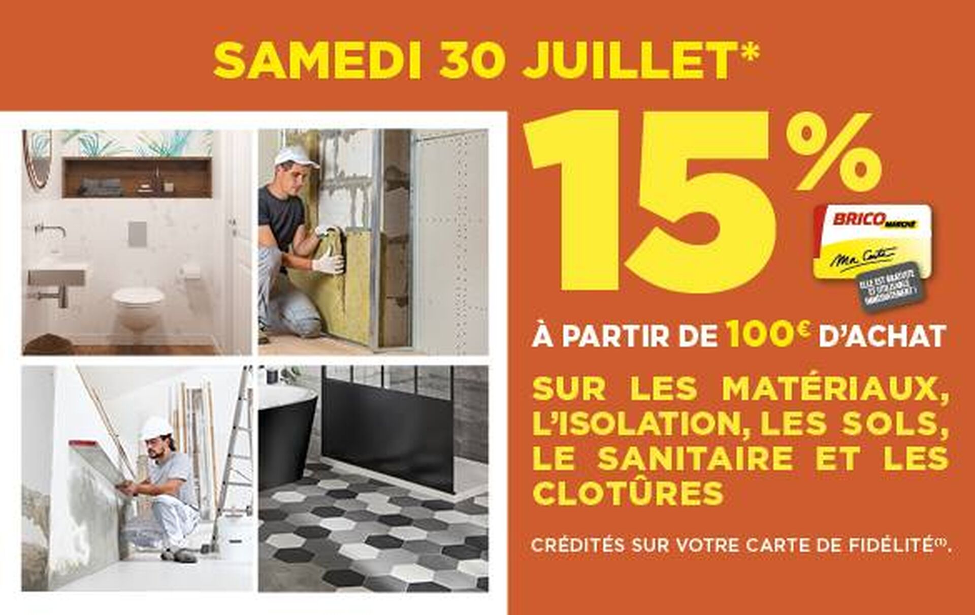 carte de fidélité à partir de 100€ d'achat (sur les matériaux, l'isolation, les sols et les clôtures).