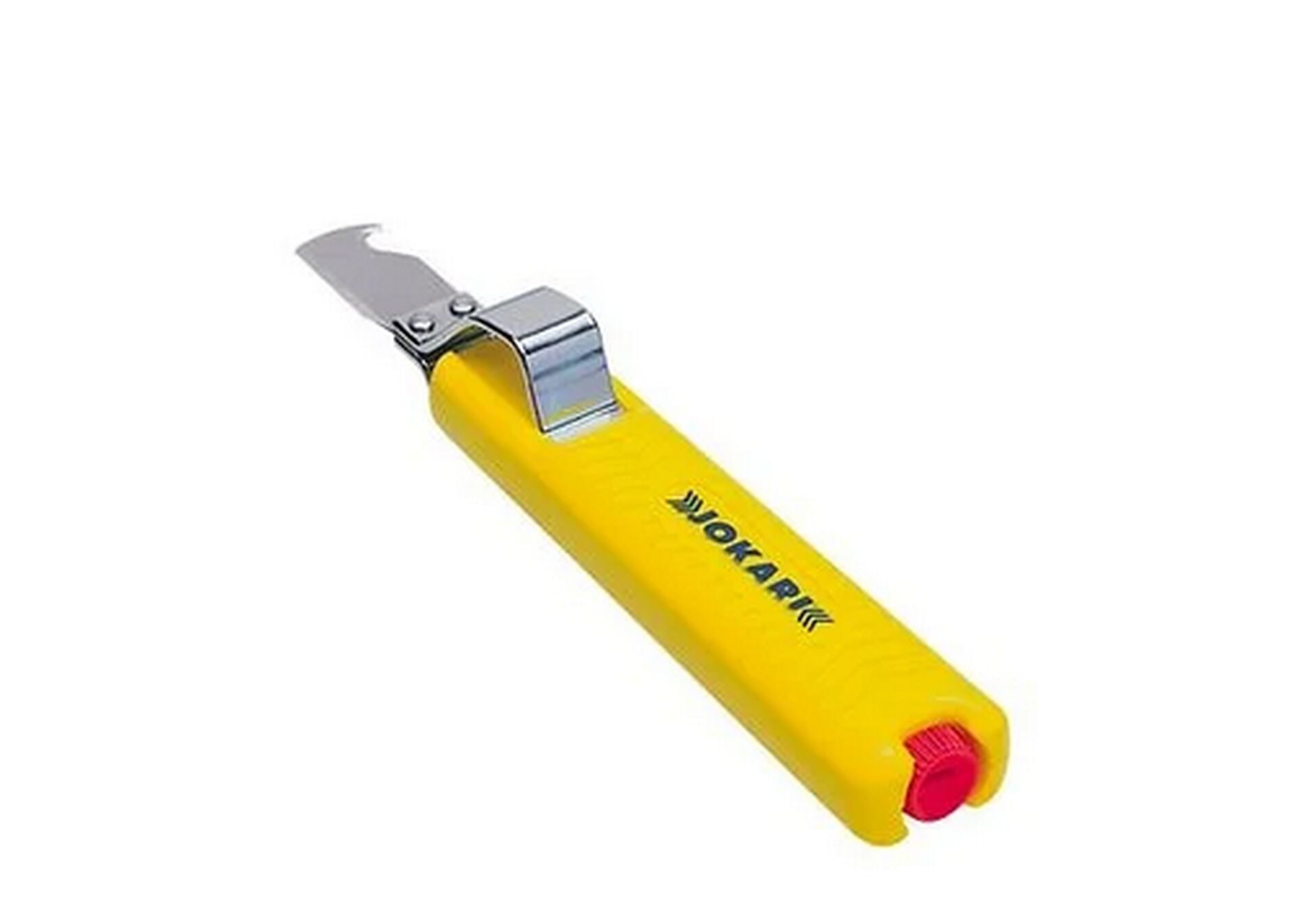 - Dénudeur (ou pince à dénuder) pour ôter l'isolant du fil électrique afin de laisser apparaître le cuivre